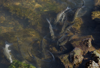 Grey mullets grazing on the stones below the 'Roman' (actually Moorish) bridge, which links the two parts of the town across the River Gilão